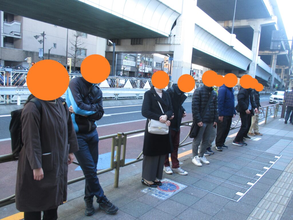 東北のとある地域のアンテナショップを発見!スタッフAとBが地物野菜などに見入っていると、気が付けば、皆さんは電線のすずめさんのようにお待ちでした。
