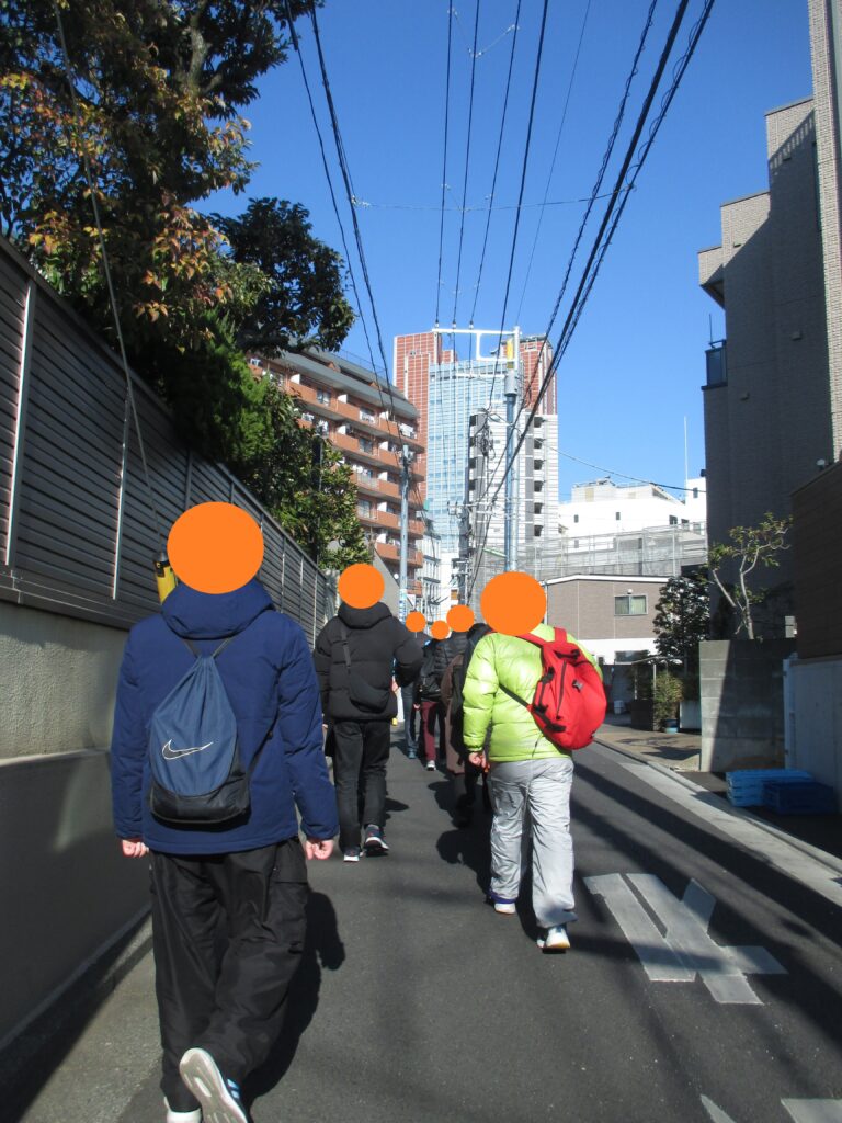 キャロットタワーを背景(前景?)に三軒茶屋中心部へと進みます。事前に三茶周辺地図を見ながら、皆でルート会議を実施。”カプセルトイのあるコンビニ”、”町の本屋さん”、”映画館” など、思い思いに三茶らしい場所を挙げて、地図にプロットしました。