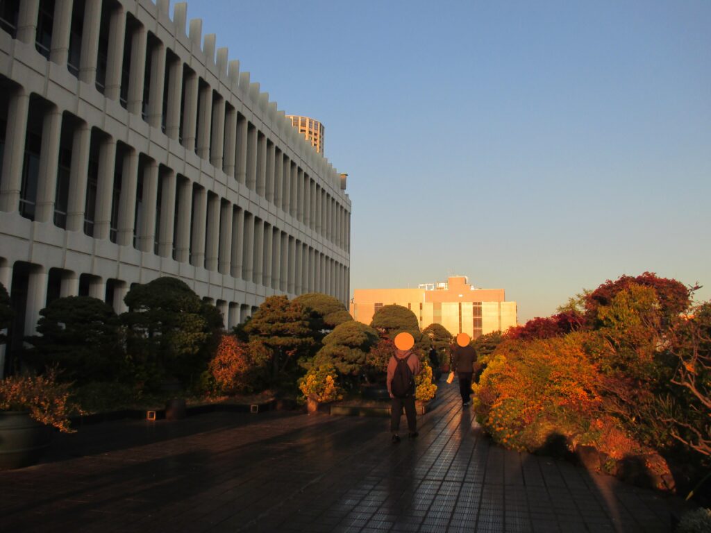 手入れが素晴らしく行き届いていて、清々しい空気に満ちています。おさんぽの締めくくりには最適!ということで、この屋上庭園で一言感想をシェアし、解散となりました。メンバーからは、「紅葉が見られて秋を感じられた」「建物が立派で楽しかった」などの感想を頂きました。