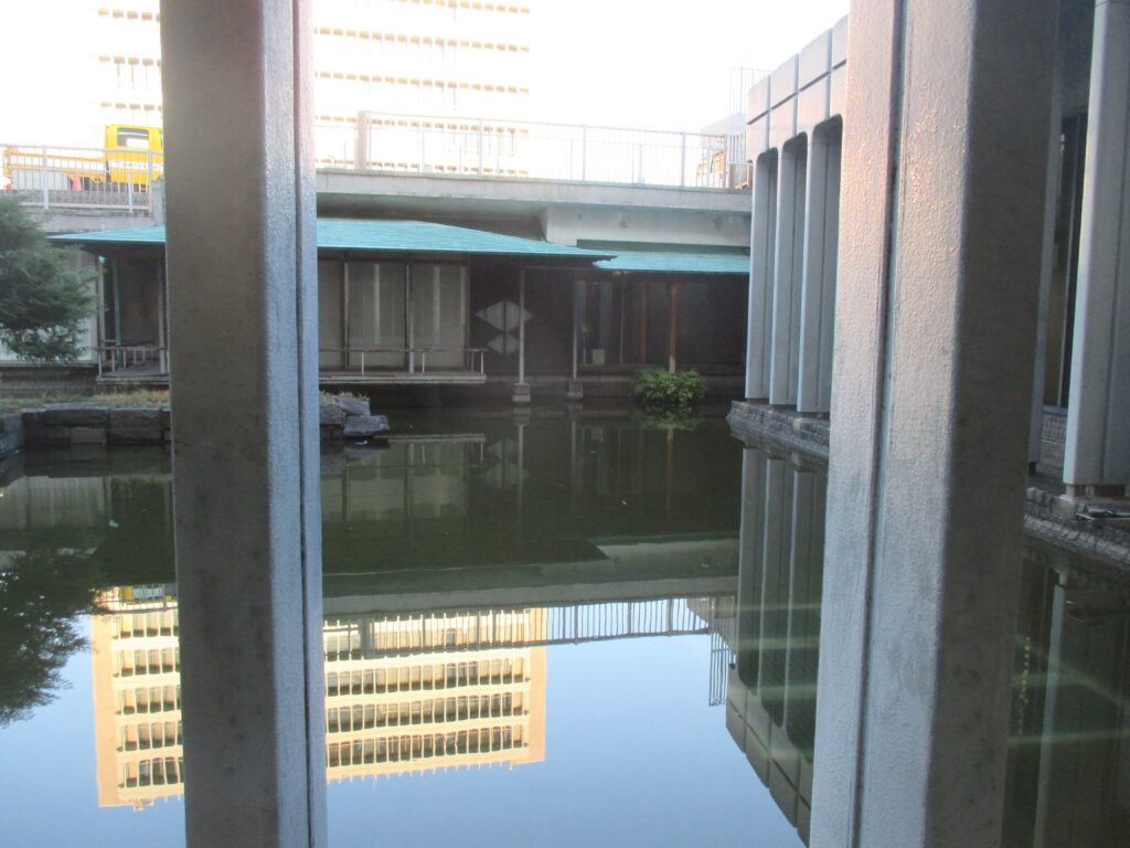 なんと、館内には茶室もあり、その周りを池が巡っております。もともと生命保険会社の社屋だったようですが、レクリエーションで茶道をやっていたのでしょうか。とてつもなく優雅です。いいなぁ~