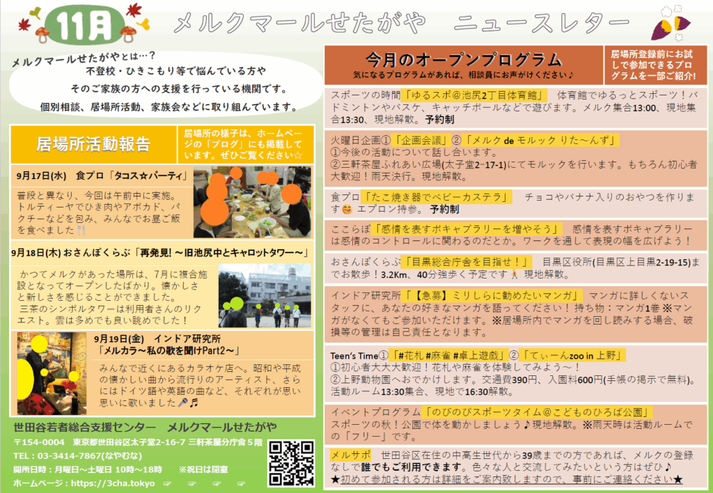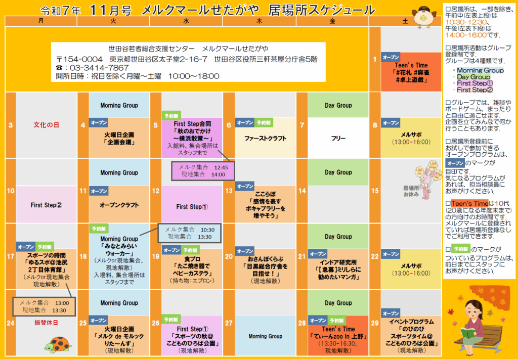この記事では、2025年11月の居場所スケジュールについてお知らせします!