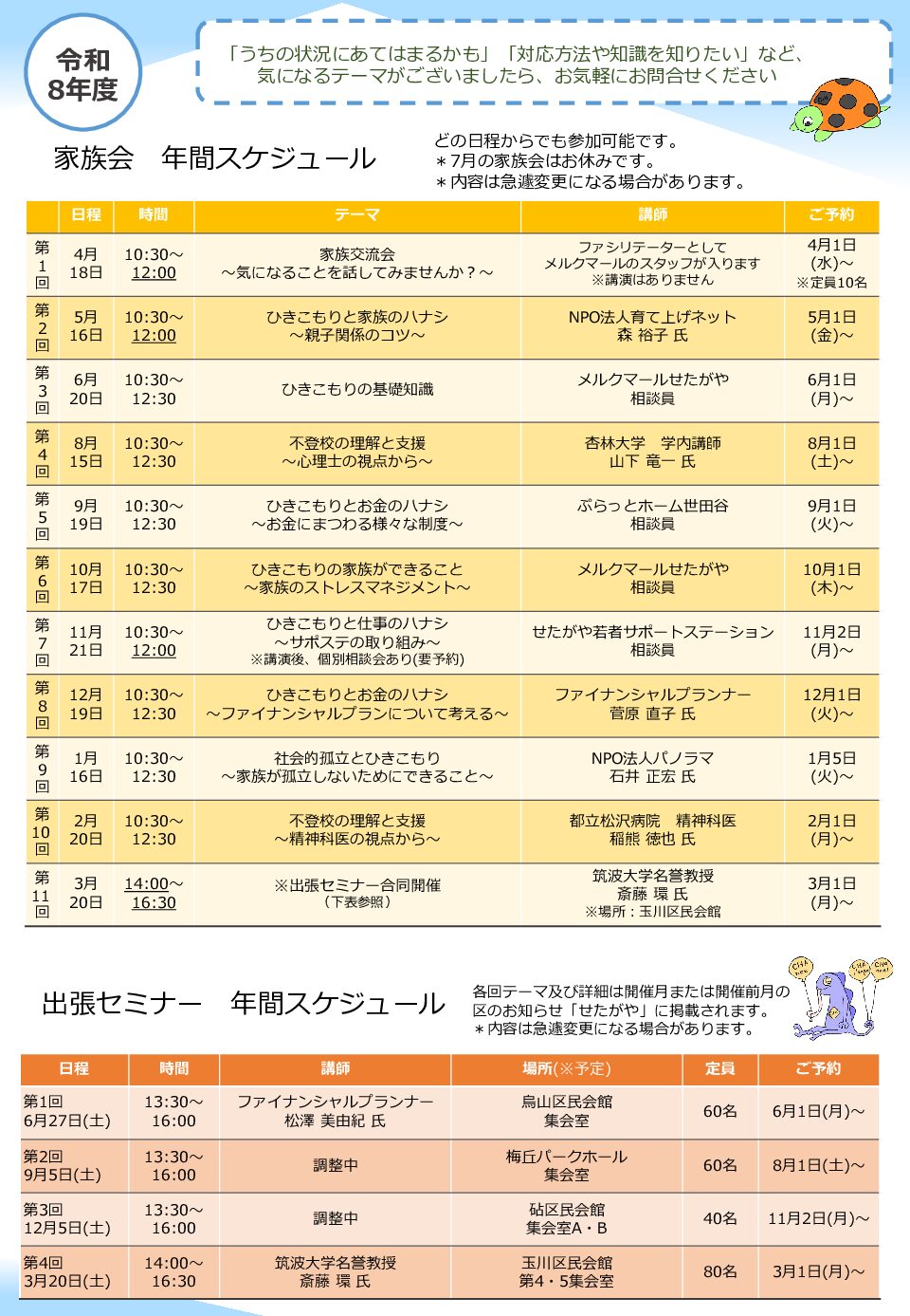 令和8年度の家族会の日程がきまりましたのでお知らせします。